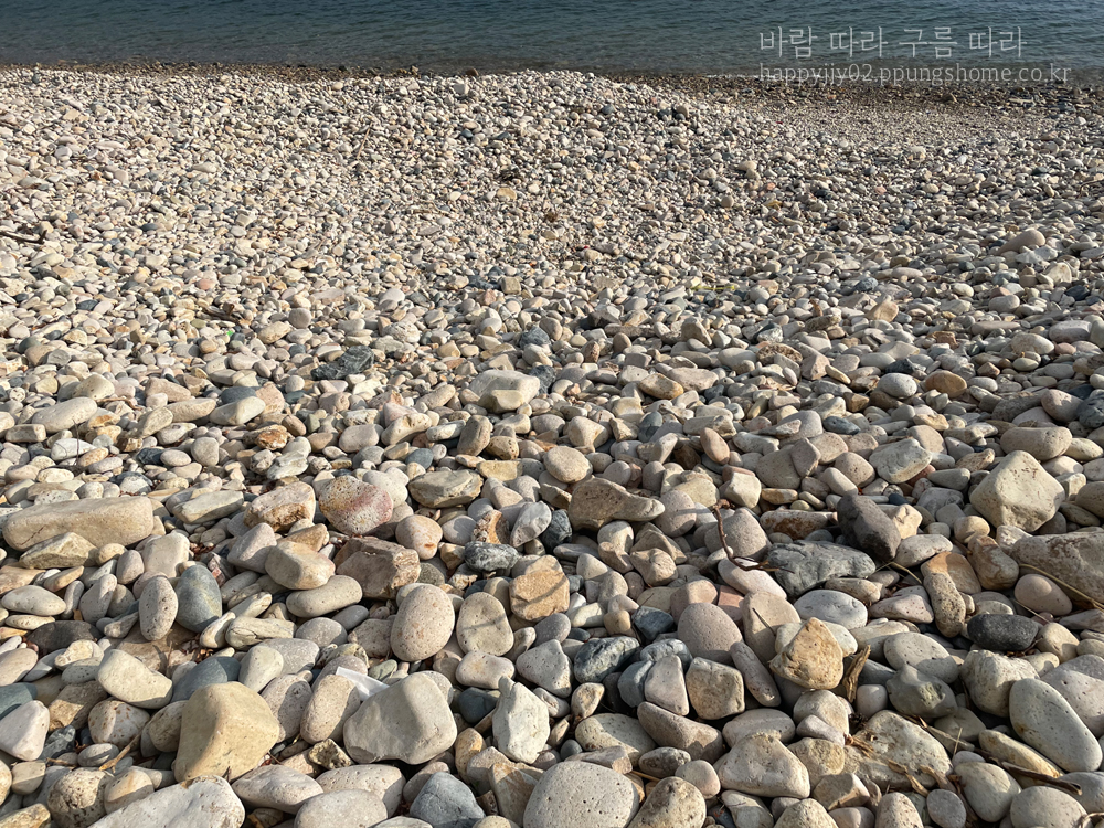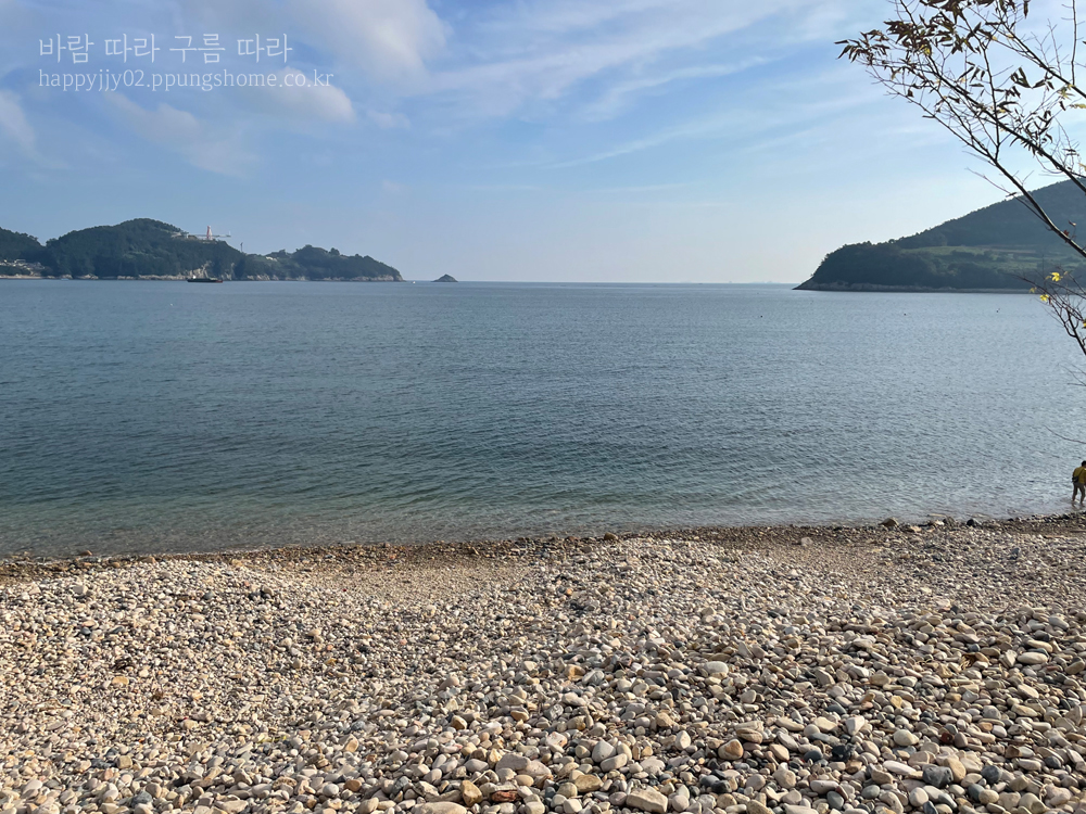 남해에는 몇 군데의 몽돌해변이 있는데요. 제가 간 곳은 천하몽돌해변이라는 곳이었습니다. 바닷가가 모래나 자갈이 아니라 동글동글한 돌이 쫙 깔려 있어서 정말 예쁘더라고요. 10월 초였음에도 바닷물이 차갑지 않아서 잠시 바다에 들어갔다가 나오기도 했답니다. 모래가 아니라 돌이나 보니 바닷물이 정말 맑았는데요. 스노쿨링을 해도 좋을 것 같은 느낌이 들었어요.