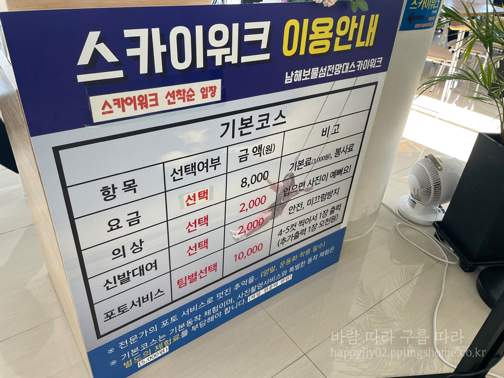 이곳 역시 사진 찍기의 명소가 되어 많은 사람이 방문하는 곳이 되었습니다. 가족, 커플, 연인이 추억 만들기에 아주 좋은 장소가 아닐까 싶어요. 참고로 초등학생도 체험이 가능한데요. 오히려 어른보다 아이들이 떨지 않고 잘하더라고요. 내부에 카페도 있어서 남해의 특산물인 유자로 만든 유자라떼, 유자아이스크림 등을 맛볼 수 있어요. 꼭대기에 올라가면 야외 자리도 있으니 바닷가를 바라보며 커피 한 잔, 꼭 하고 오세요.