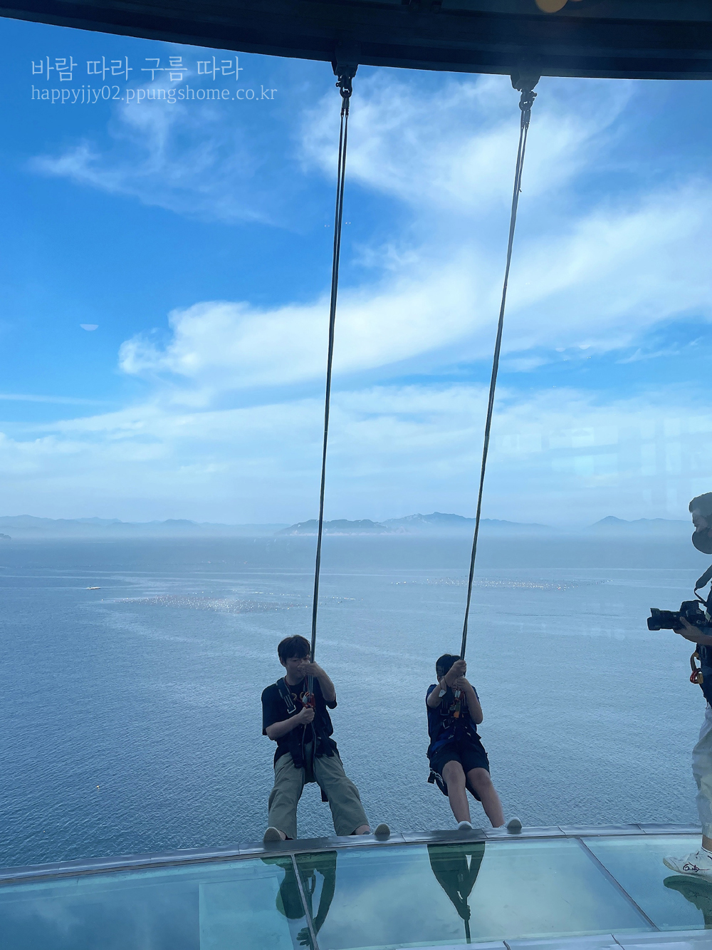 보물섬 전망대는 조금 스릴을 즐기로 싶은 분이라면 추천하는 관광지입니다. 바닷가 절벽 위에 위치하고 있어서 넓은 바다를 전망할 수 있을 뿐 아니라 스카이워크라는 체험을 할 수 있는데요. 줄에 의지해서 전망대 바깥 쪽의 투명한 바닥을 걸어갈 수 있을 뿐 아니라 살짝 매달리는 체험도 할 수 있기 때문입니다.