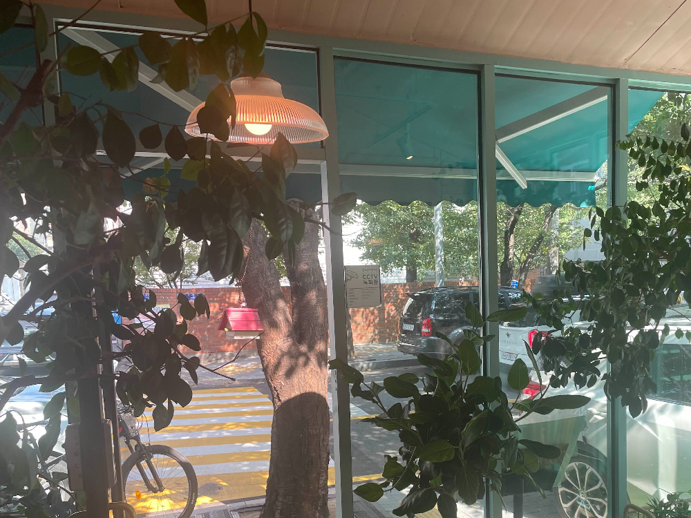 출입문 쪽 풍경인데 식물이 있어서 싱그러운 느낌이 드네요.
