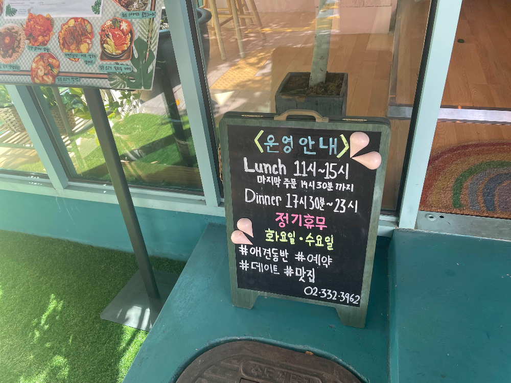 앞에 붙어 있는 영업시간을 보니 점심시간이 11시부터 3시, 저녁시간은 5시 30분부터 11시, 그리고 화요일과 수요일이 정기휴무라고 해요. 휴무일을 잘 알아두지 않으면 찾아갔다가 헛걸음을 할 수도 있겠어요. 애견동반이라고 써 있으니 당당하게 강아지를 데리고 들어갑니다.