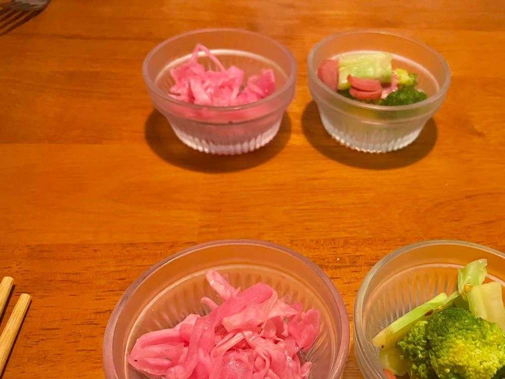 기본 반찬입니다. 사람마다 각자 따로 주시더라고요. 브로콜리가 맛있었어요.