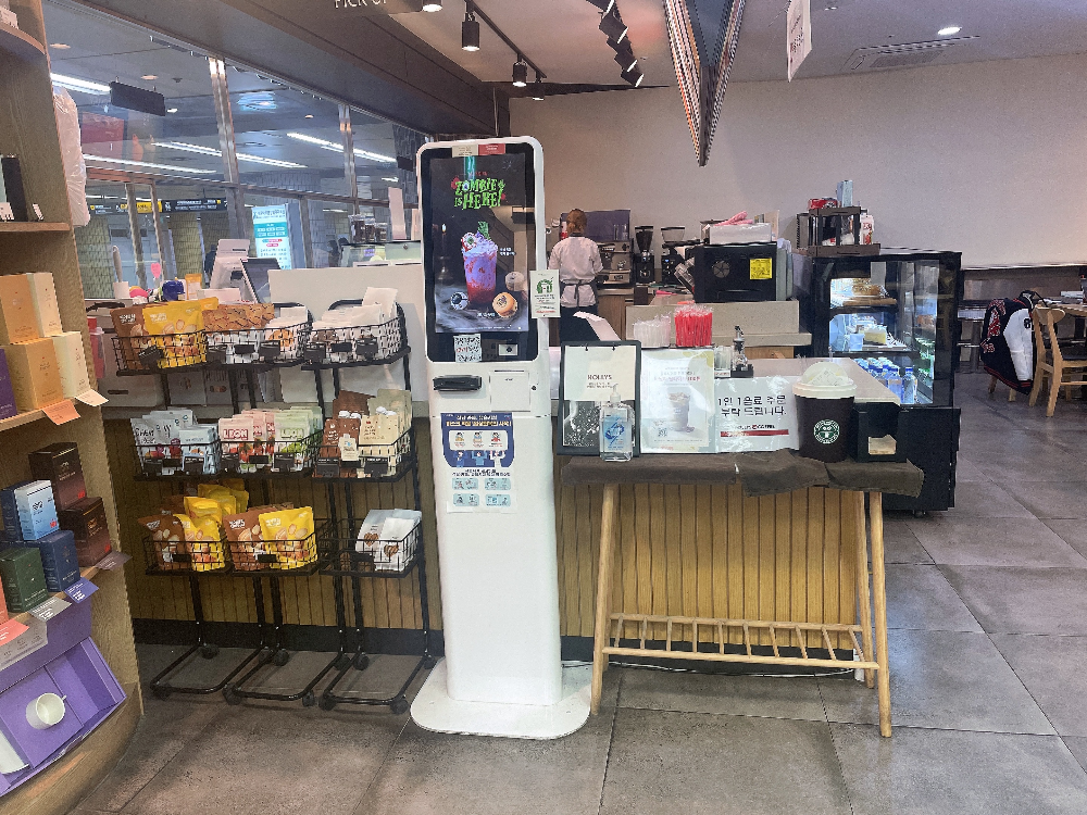 역시나 다른 할리스처럼 키오스크로 주문합니다. 쿠폰으로 카페라떼 주문!
