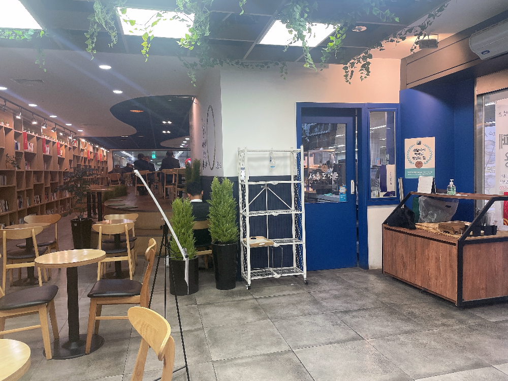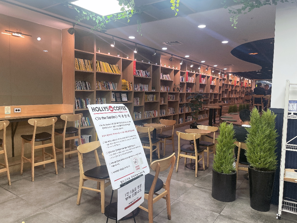 다만 공항철도나 경의중앙선으로 통하는 출구는 보이지 않아서 그쪽 출구로 들어오면 찾기 어려울 수도 있겠다 싶었어요. 결론은 할리스 공덕역북카페점을 방문하고 싶다면 5호선 출구로 들어오시는 것을 추천합니다. 생각보다 매장도 커서 눈에 확 들어왔어요. 북카페점이라서 그런지 책이 엄청나게 꽂혀 있더군요.