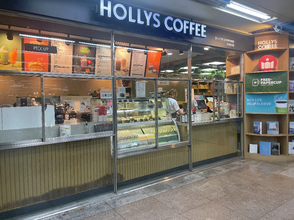 할리스 공덕역북카페점은 공덕역 5호선 쪽에 있습니다. 저는 8번 출구로 내려왔는데 거의 바로 앞이라고 해도 될 만큼 가까이 있었어요. 그 외 5호선의 다른 출구로 들어와도 금방 찾을 수 있을 거예요. 6호선도 멀지 않아서 저는 8번 출구로 들어와서 커피를 사고 6호선 출구로 나갔어요. 5호선과 6호선 출구는 같은 층이라서 이동이 편리했습니다.