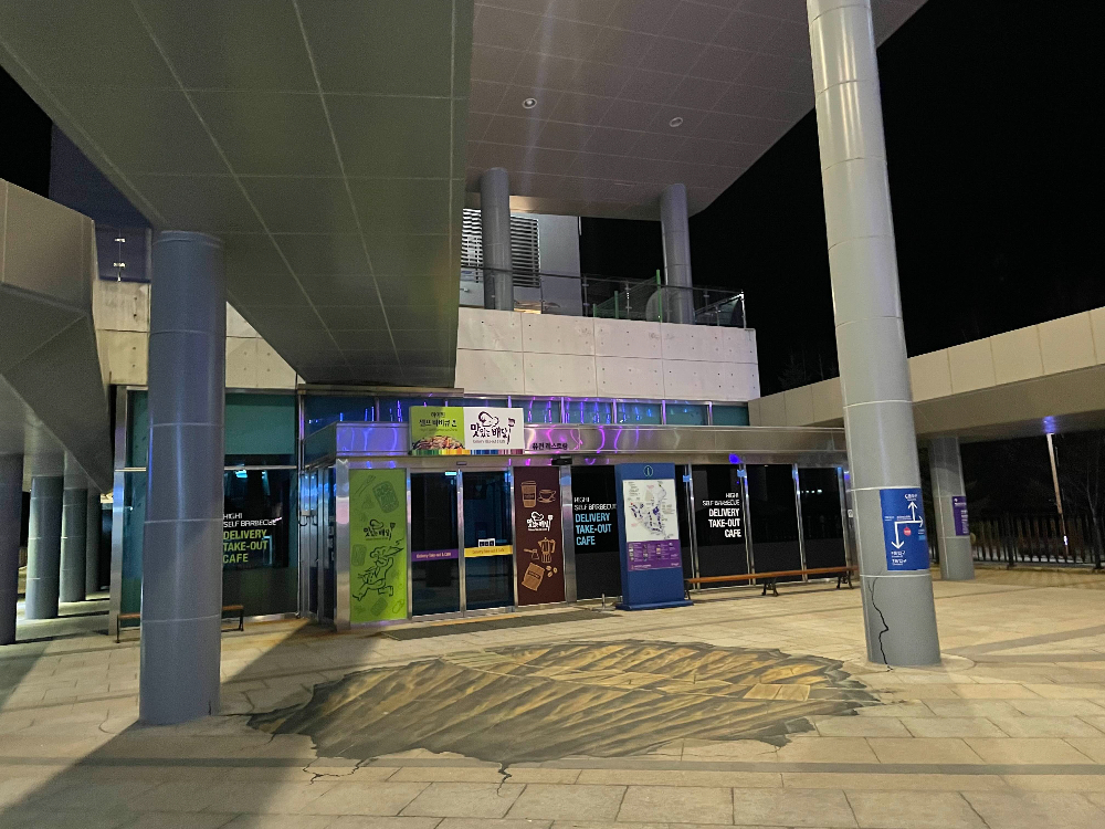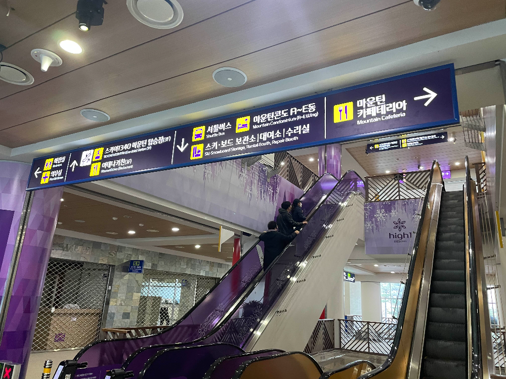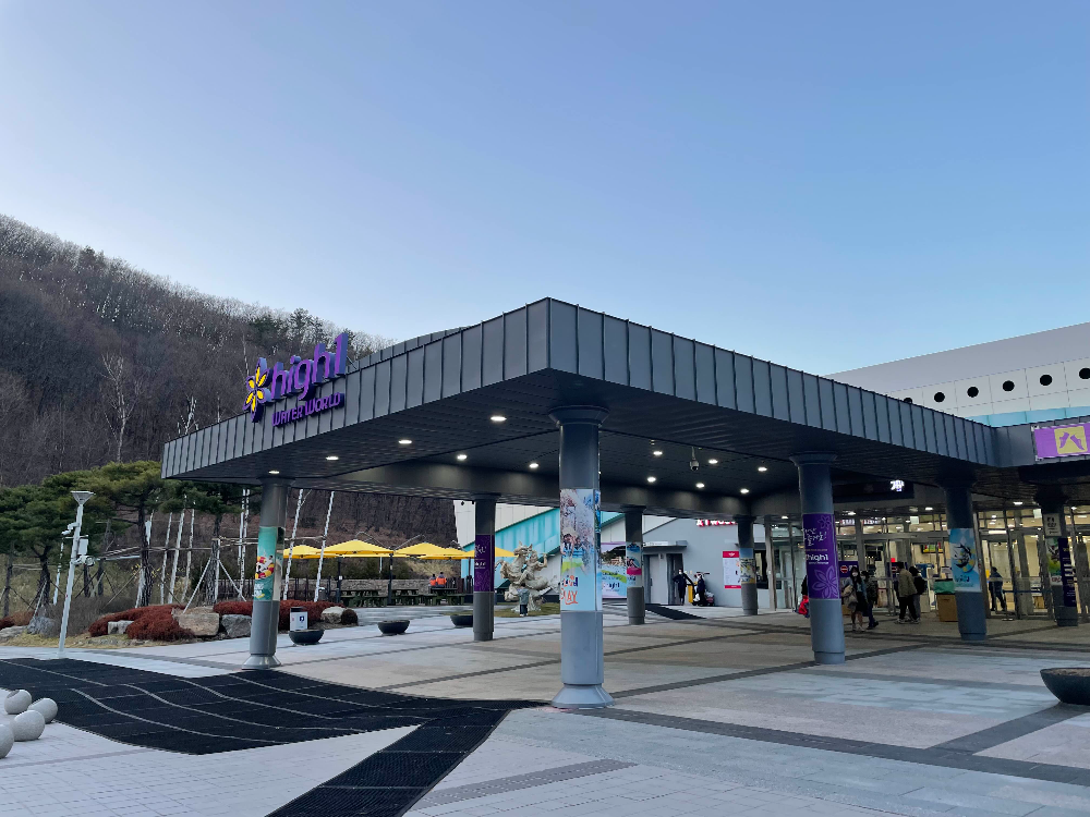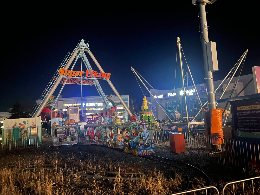 G동과 F동 사이에 마운틴 플라자라는 건물이 있는데 그곳에 오락실, 노래방, 빨래방 등이 있어서 이용 가능했습니다. 이용하는 사람은 많지 않았어요. 사람이 많을 줄 알았는데 굉장히 한산하더라고요. 토요일에 가면 또 다를지 모르겠네요. 콘도 주변을 산책하기도 좋았습니다. 언덕 위에 놀이동산이 있어서 가봤는데 운영을 안 하는 줄 알았더니 토요일 오전에는 운영을 하더라고요. 아이들이 좋아할 만한 놀이기구가 좀 있었어요. 놀이기구 있는 쪽으로 가면 그 앞에 스키하우스가 있어요.