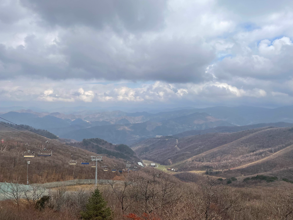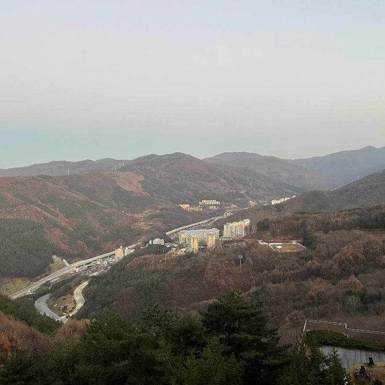 체크인할 때 마운틴콘도 F, G, T동 중에 고르라고 떠서 잠깐 어찌해야 하나 고민했어요. 그치만 T동은 이미 다 나갔고, F와 G동은 거의 비슷하게 생긴 것 같아서 F동으로 골랐습니다. 3층이었는데, 뷰는 크게 다르지 않을 것 같아요. 어차피 언덕 위에 있어서 아래쪽이 훤히 내려다보이는 구조더라고요.