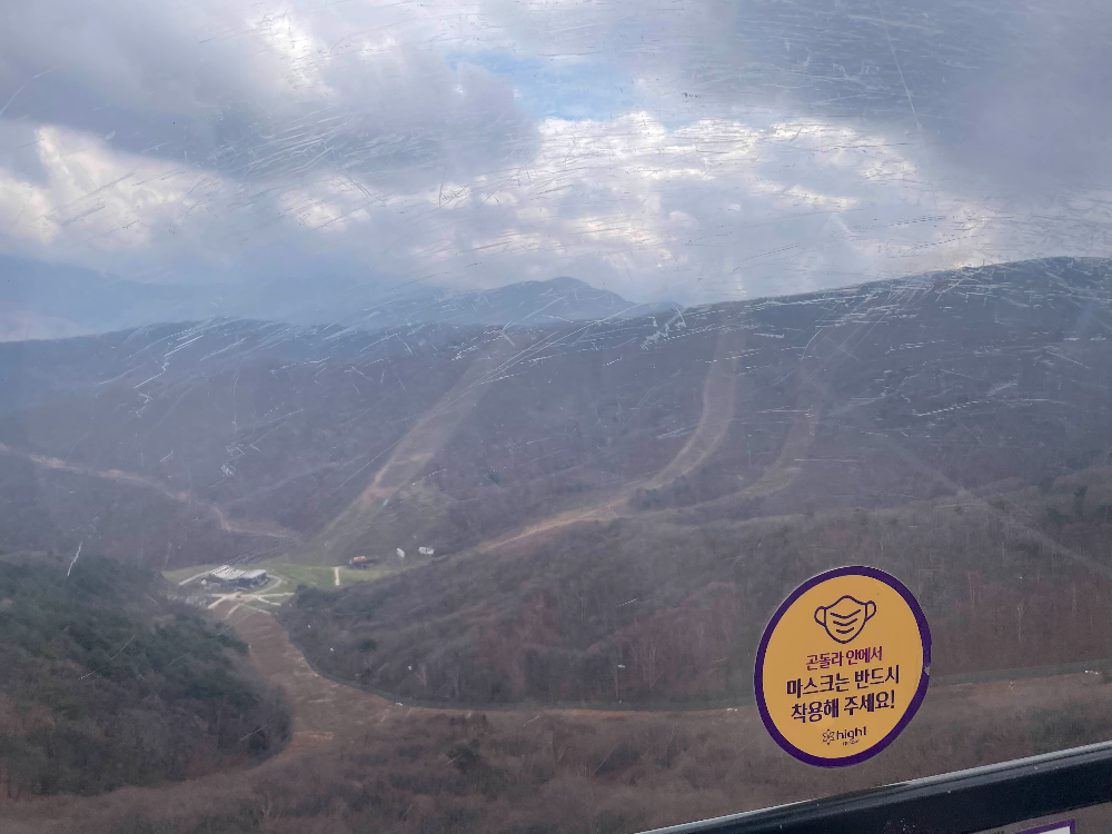 곤돌라 창문에 기스가 많더라고요. 아마도 스키를 탈 때 써서 그런 것이 아닌가 싶어요.