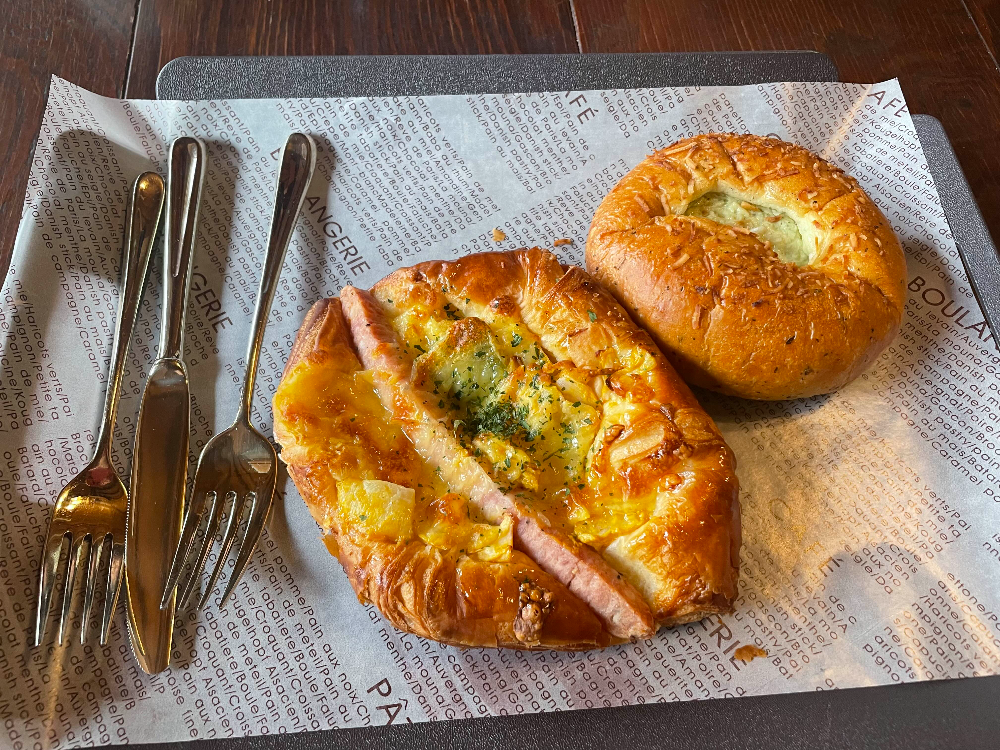 배 아픈 남편은 매실차를... 저는 커피와 빵을 먹었습니다. 소시지 빵은 그냥 그랬는데, 바질크림이 들어 있는 빵이 완전 맛있었어요. 또 먹고 싶네요.