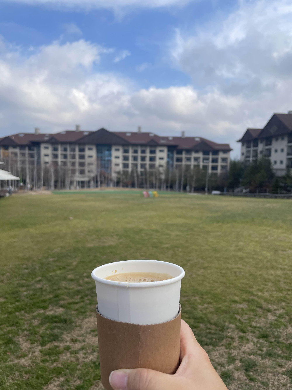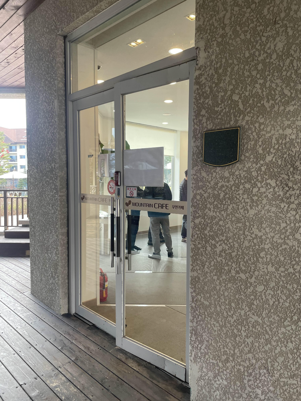 스키하우스에서 마운틴콘도 A동으로 조금만 가면 무인카페 마운틴카페가 있더라고요. 조식을 먹고 커피가 당겨서 이쪽으로 와서 커피를 구매했어요.
