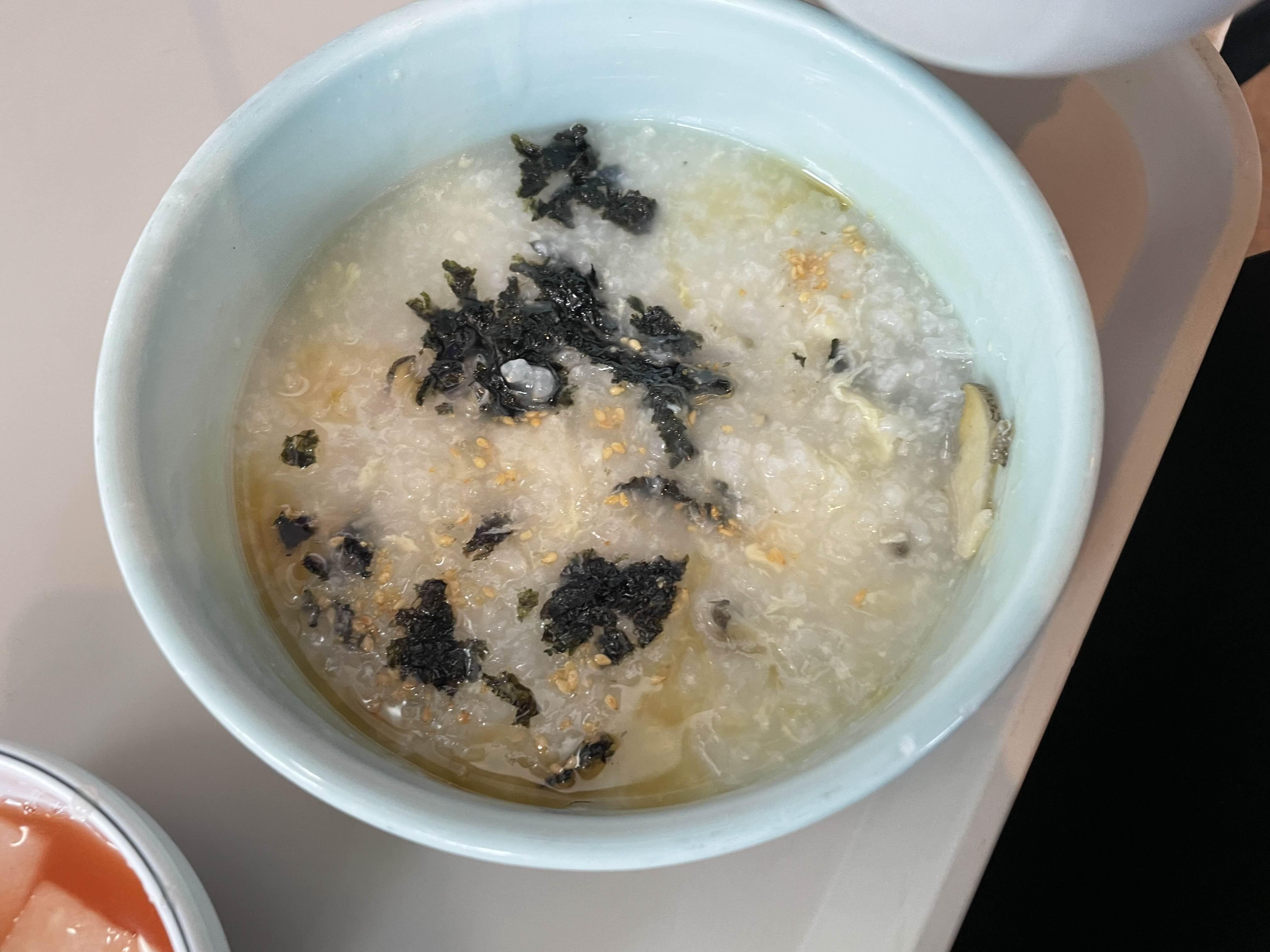 남편이 선택한 전복죽도 그냥 그럭저럭 먹을 만한 전복죽이었습니다. 카페테리아 조식은 리조트에서 즐기는 느긋한 조식이 아니라 뭔가 단체여행에서 급하게 먹는 급식 같은 느낌이 들었어요. 다음에 간다면 뷔페로 가야겠다는 생각이...
