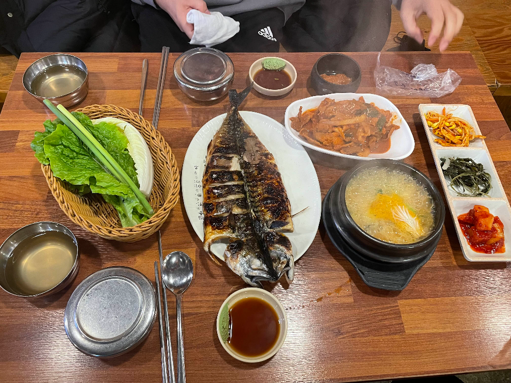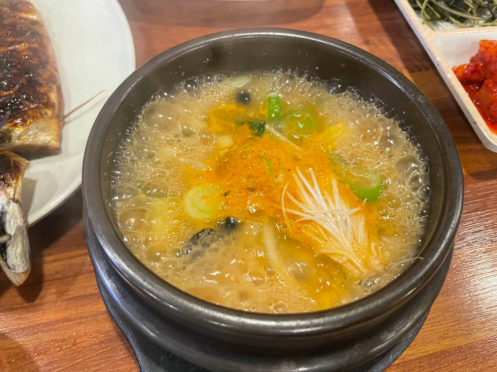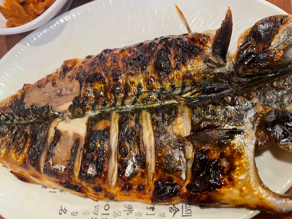 고등어가 아주 바삭바삭 잘 구워져서 나왔어요. 삼치 만큼은 아니지만 고등어도 맛있었습니다. 저는 비린 맛에 좀 약한 편이라서 고등어보다는 삼치를 더 좋아하긴 하지만, 고등어 좋아하시는 분들은 아주 좋아할 만한 맛이 아닐까 싶어요.