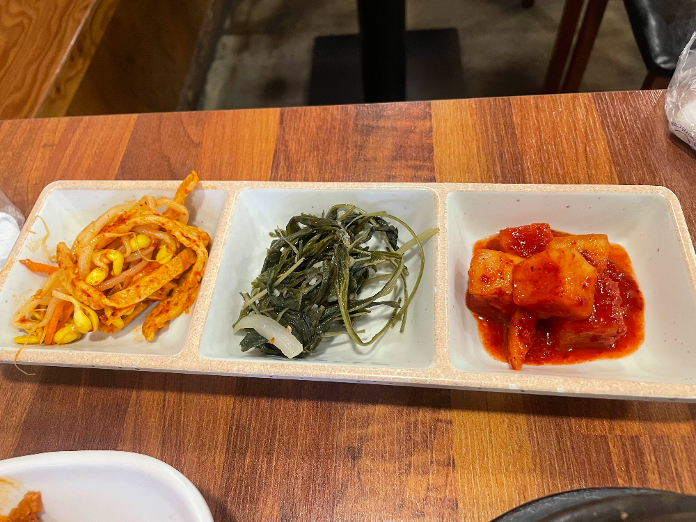 털보고된이는 항상 저 밥공기에 물을 주십니다. 약간 시그니처 같은 거라고 해야 할까요? 그리고 다소 평범한 밑반찬.