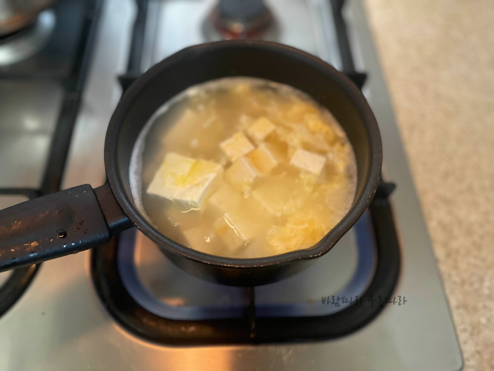 두부는 없으면 안 넣어도 되고, 다시다도 혹시 조미료가 싫다면 안 넣어도 될 듯합니다. 간장으로 간을 맞추기도 하고, 새우젓을 넣는 방법도 있는데, 집에 새우젓도 없어서... 재료는 최소한으로 했습니다.