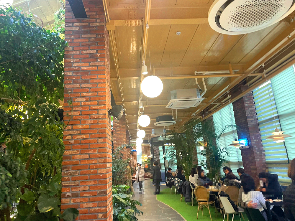 천장도 천부 창으로 되어 있어서 햇빛이 잘 들어오고, 엄청 큰 식물이 많아서 식물원 안에 있는 기분이에요. 사람이 많긴 해도 식물에 둘러 싸여 있으니 싱그러운 느낌이 들었어요. 대형카페도 이곳저곳 가봤는데 포레스트 아웃팅스는 깔끔하기도 하고, 식물도 관리가 되어 있는 느낌이 들어서 다시 찾는 것 같아요.