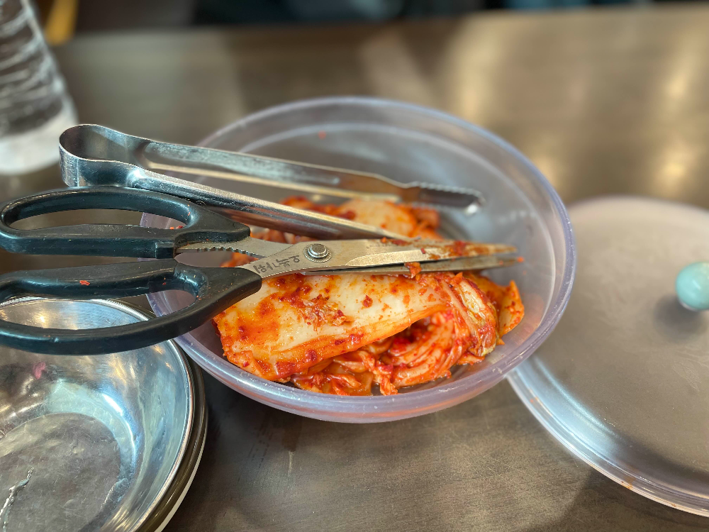 김치를 직접 잘라서 먹으면 되는데요. 오랜만에 먹었더니 김치가 아주 맛깔나더라고요. 칼국수에 딱 어울리는 겉절이 김치였습니다.