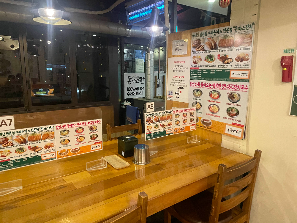 혼밥하기 좋은 자리도 있어요. 혼자 식사하는 분들도 좀 있었고요. 자리가 널찍해서 식사하기에 불편함은 없습니다. 가끔 맛집에 가면 자리가 너무 비좁은 곳들이 있는데 이곳은 테이블이 널찍널찍 해요.