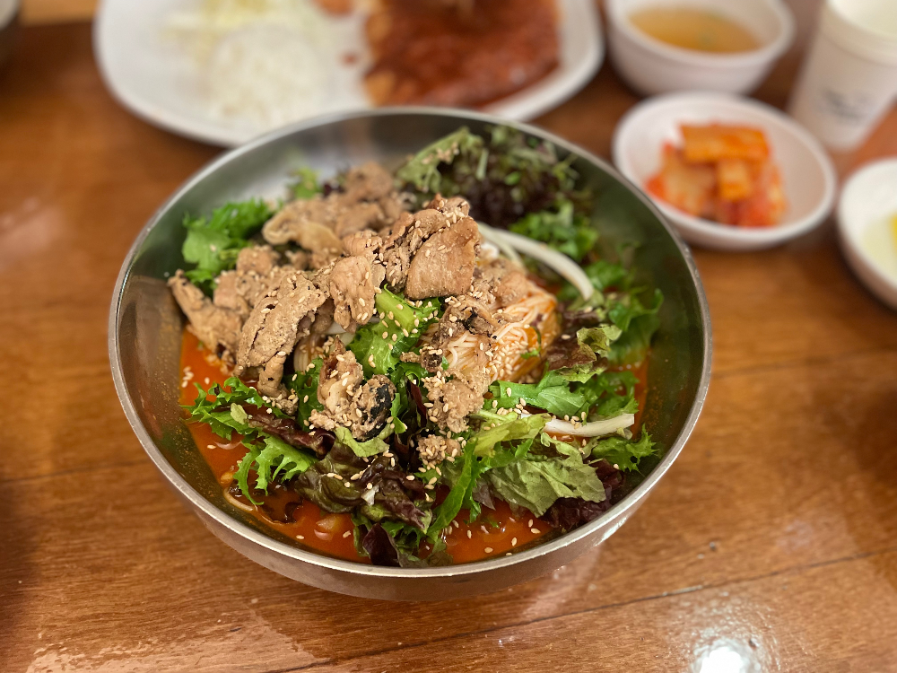 이번에 갔더니 새로 숯불고기국수가 나왔길래 숯불고기비빔국수와 잔치국수, 왕돈까스 이렇게 주문했어요. 3명이서 갔는데 양이 딱 맞았던 것 같아요. 다만 숯불고기는 제 입맛에는 별로였어요. 비빔국수에 돈까스가 함께 나오는 게 더 나은 것 같아요. 다음에 갈 땐 돈비국수 먹는 걸로~!