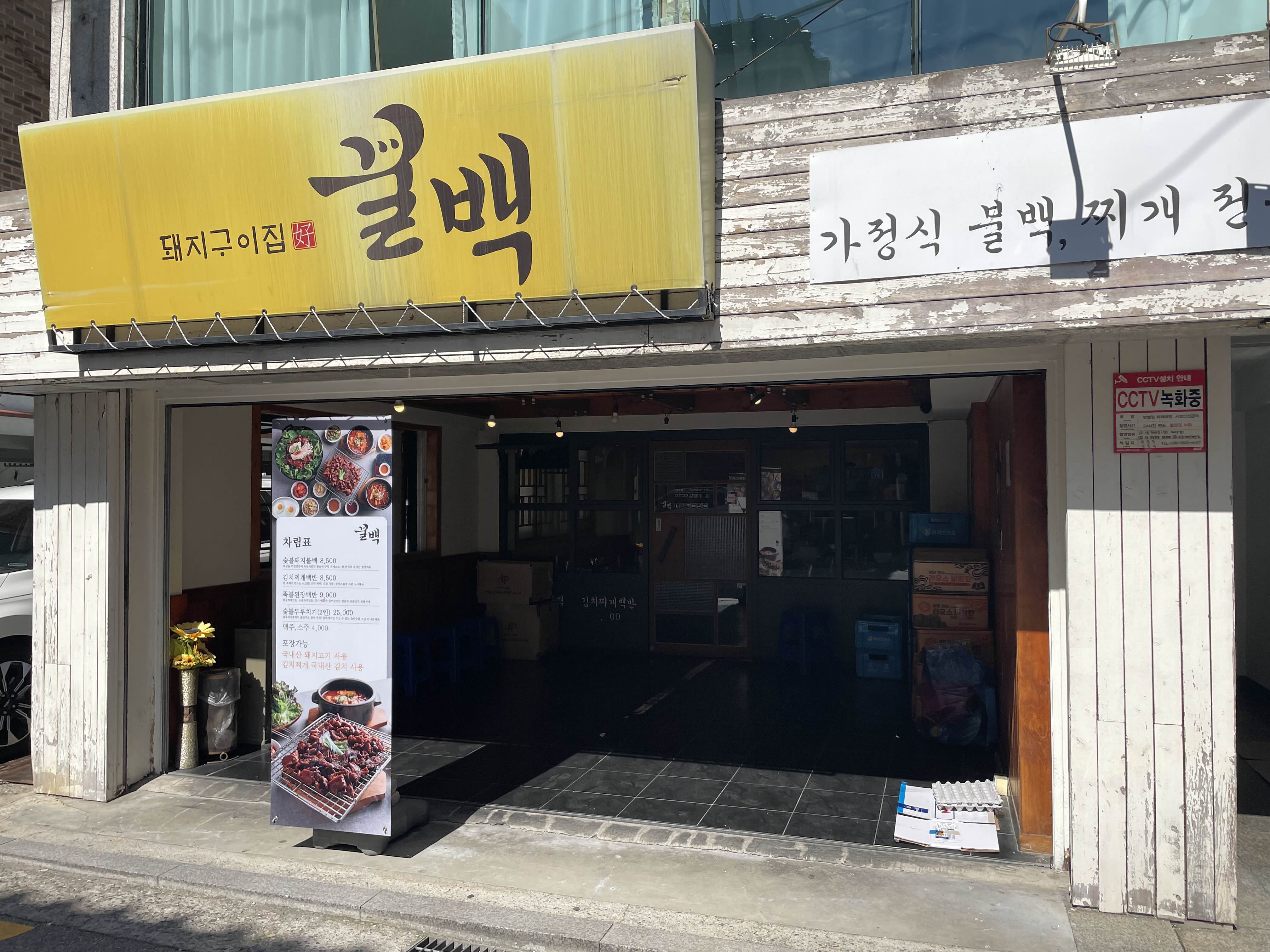 망원에 놀러갈 때마다 굉장히 자주 가는 망원동 맛집이 있는데, 바로 꿀백이라는 곳입니다. 가정식 불백, 찌개 전문이라고 써 있네요. 한식, 그중에서도 제육볶음 스타일의 불백이 먹고 싶을 때는 꿀백만한 곳이 없는 것 같네요.