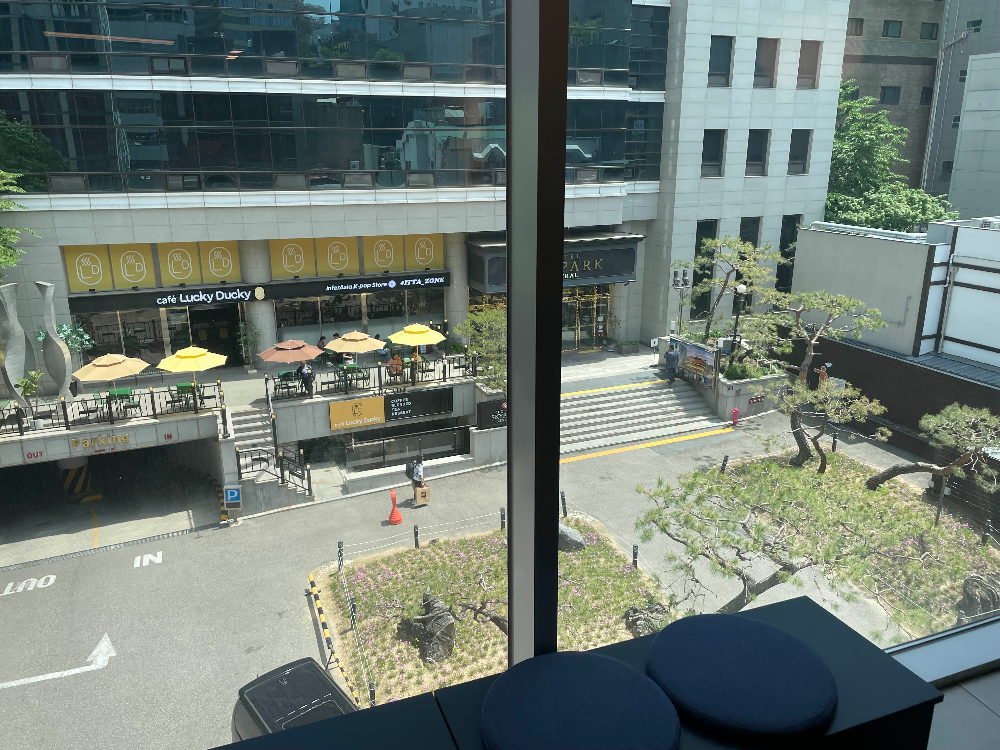 주말에는 어떨지 모르겠지만, 평일 낮 시간에 카페 4층은 굉장히 한산했어요. 손님들이 아랫층으로 많이 가시는 것인지... 여유로운 분위기에서 즐겁게 티타임을 가졌습니다. 창가로 보이는 뷰도 좋았네요.
