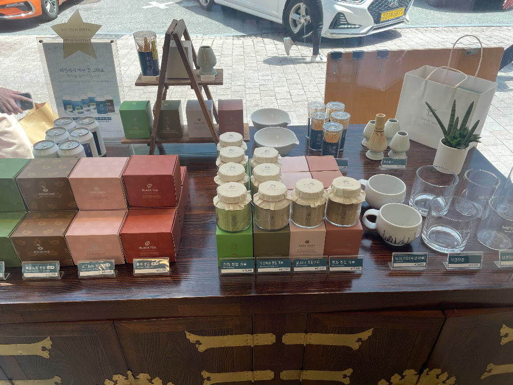 1층에서 다양한 차 제품을 판매하고 있습니다. 카페 전체가 한국적인 느낌이 많이 나는 분위기예요. 명동 특성상 외국 손님이 방문하기에 좋은 카페인 듯합니다.