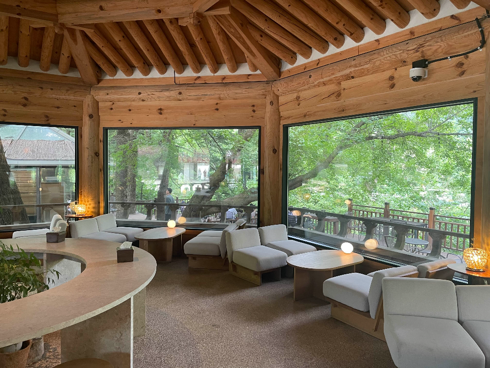 전통찻집으로 들어오니 다양한 베이커리와 다기 등을 판매하고 있었어요. 근데 생각보다 안쪽이 시원하지 않더라고요. 뒤쪽으로 보이는 밖의 테라스가 바람이 불어서 훨씬 시원했어요.