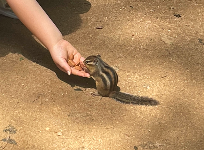 이곳에는 다람쥐가 많이 사는데요. 신기하게 사람들이 먹을 것을 주니 와서 받아먹더라고요. 일부러 아몬드를 챙겨와서 주는 사람도 있었어요. 너무 귀엽네요.