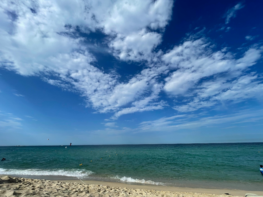다행히 둘째날에는 날이 개서 해수욕장에서 놀 수 있었습니다. 경포대는 파라솔 대여는 만 원인데, 곳곳에 자기 파라솔을 칠 수 있는 구간이 있어서 저희는 가져온 파라솔과 의자를 펴놨어요. 그치만 경포대는 물놀이하기에는 좀 불편하더라고요. 이미 몇 년 전에도 느꼈지만 모래가 너무 푹푹 빠지고, 물속에 들어가면 급하게 깊어져서 물을 좋아하지만 동시에 무서워하기도 하는 저같은 사람에게는 부담스러운 물놀이 장소가 되었네요. 아마도 물놀이하러는 다시 오기 힘들 듯해요.