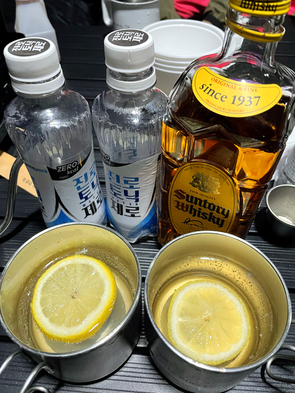 그리고 레몬도 직접 준비해서 하이볼을 만들어 마시기도 하는데요. 맨날 먹는 것만 먹으면 질리니까 조금 준비물이 많더라도 챙겨가려고 해요.