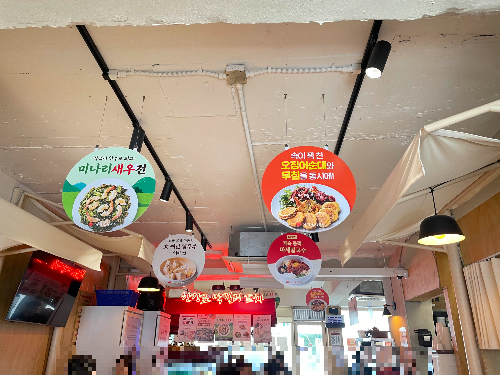 미나리 새우전, 오징어 순대 등 다양한 메뉴를 팔고 있더라고요!