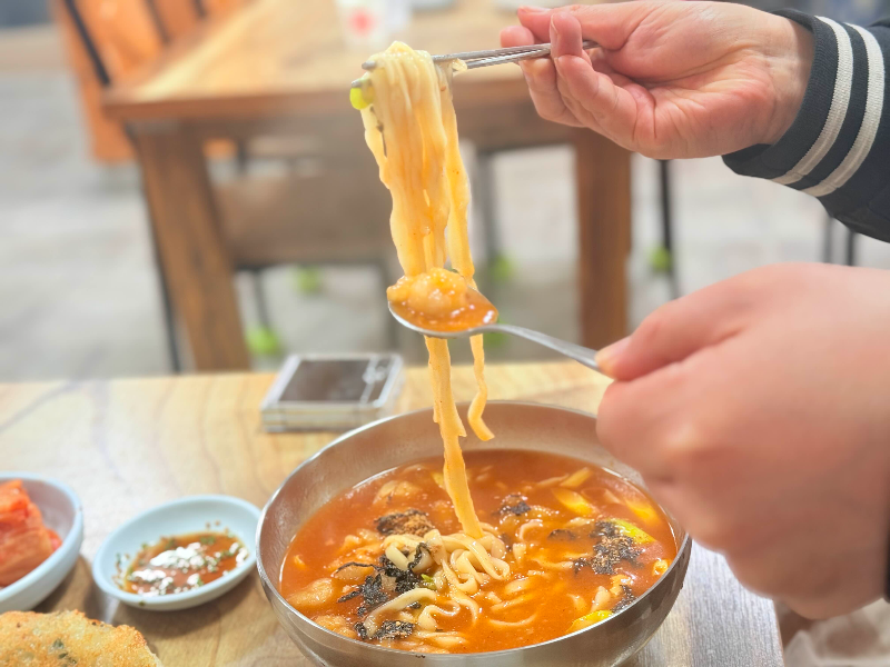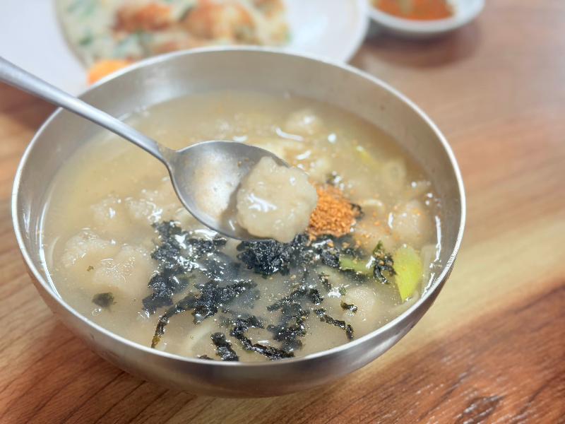 이곳은 옹심이와 칼국수가 함께 들어 있는 스타일인데요. 그래서 더 맛있었던 것 같아요. 면발도 쫄깃하고, 옹심이도 씹히는 맛이 좋았어요. 원래 아침밥은 안 먹지만 술술 잘 들어 갔네요.