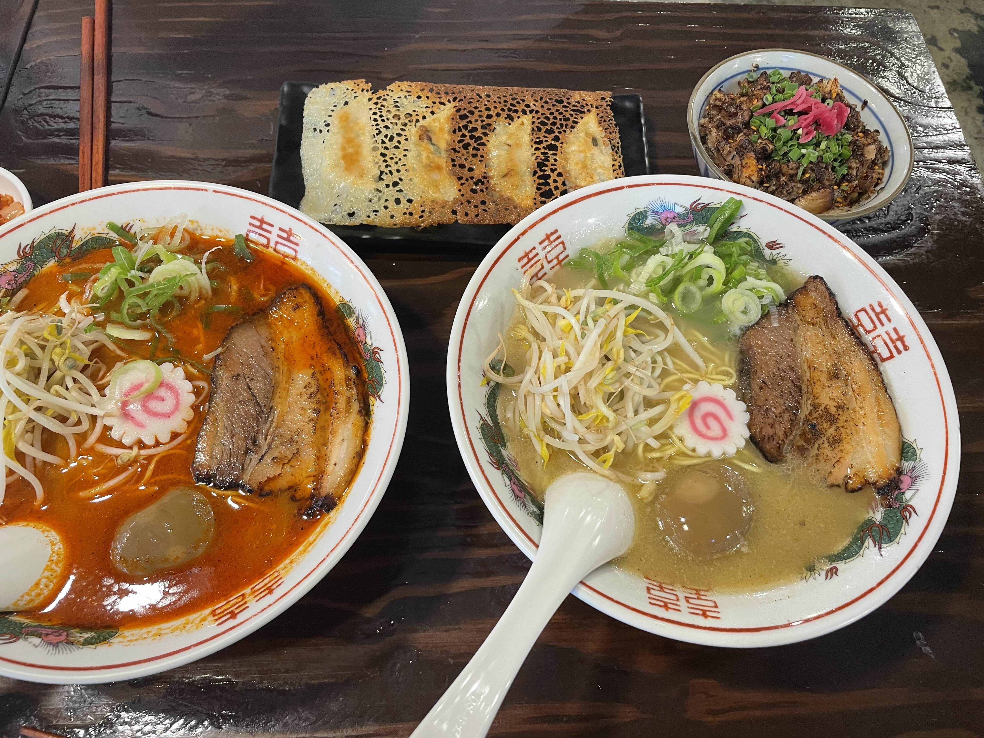 친구와 함께 2인 세트를 시키고 신라멘과 그냥 라멘을 시켰습니다. 원래 매운 라멘은 별로 좋아하지 않지만 친구가 먹어보고 싶다고 해서 나눠서 먹어보기로 했어요.